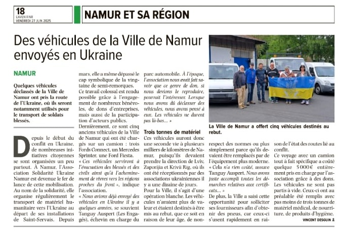A l’origine fondée comme association de faits, Solidarité Ukraine-Namur a pris en mai 2022 la forme d’une asbl. Elle s’associe régulièrement avec d’autres asbls humanitaires.